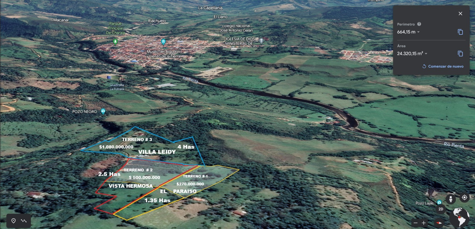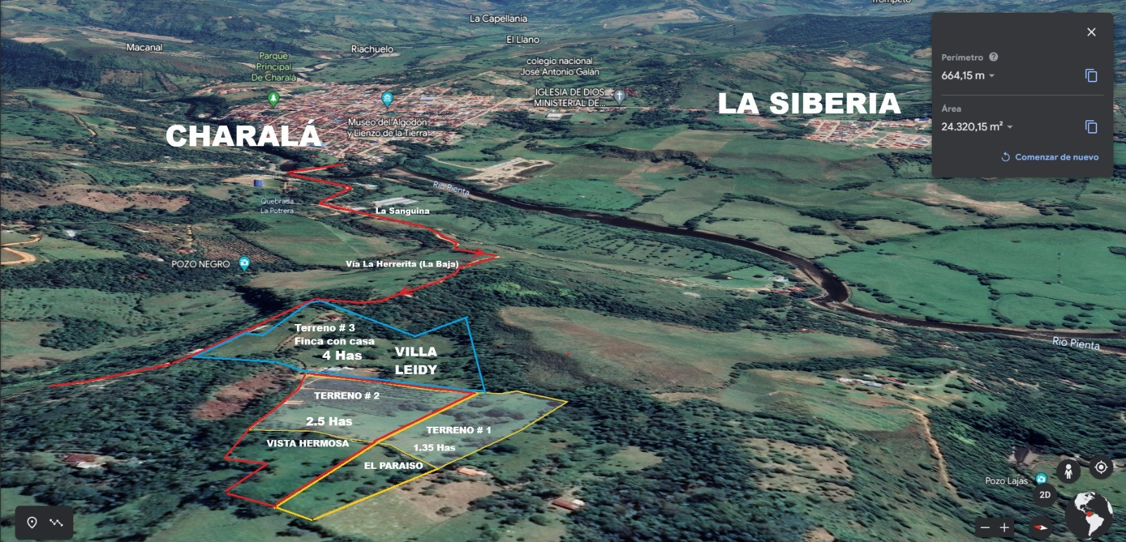 VISTA HERMOSA - VENTA LOTE DE TERRENO DE EXTENSION APROXIMADA DE 2.5 HECTAREAS = 25.000 Metros Cuadrados. Medidos con equipo topográfico diciembre 2024.